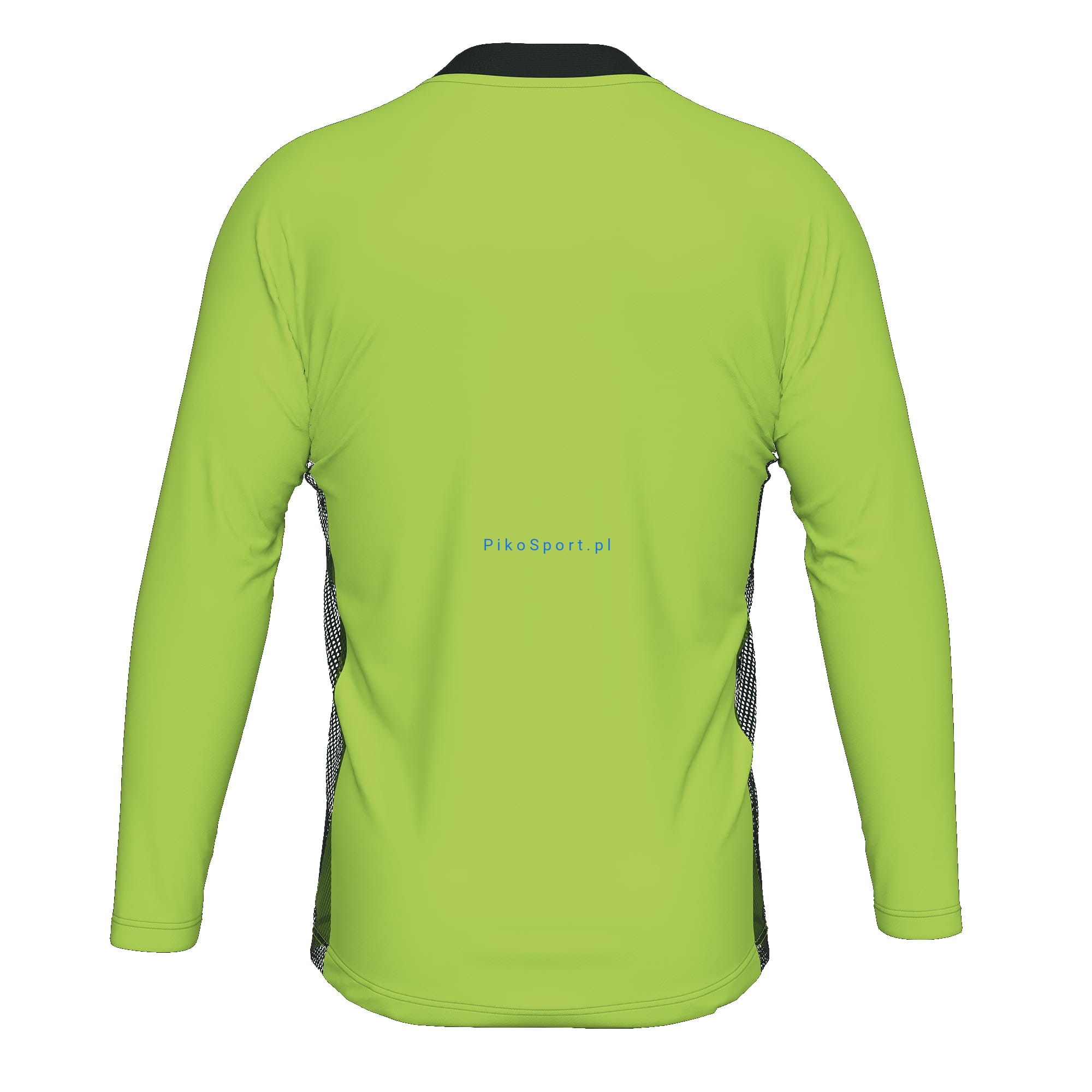 Errea Jerzy to profesjonalna bluza bramkarska wykonana z miękkiego, oddychającego materiału technicznego. Bluza ma regularny krój, dopasowujący się do każdego typu sylwetki oraz klasyczną, dwubarwną szatę graficzną. Posiada dodatkowe boczne wstawki ze specjalnej siateczki, które zapewniają odpowiednią cyrkulację powietrza. Ściągaczowy dekolt w serek został uzupełniony w elastyczną taśmę pochłaniającą pot.