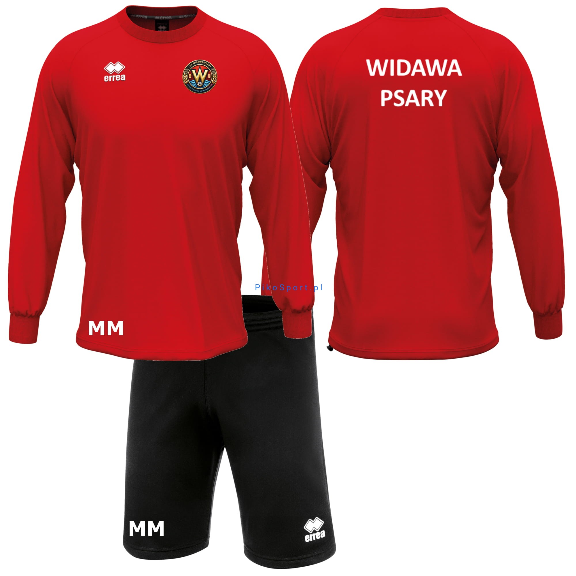 Cena dresu zawiera nadruki: herb i nazwę Widawa Psary, inicjały na bluzie i spodniach.