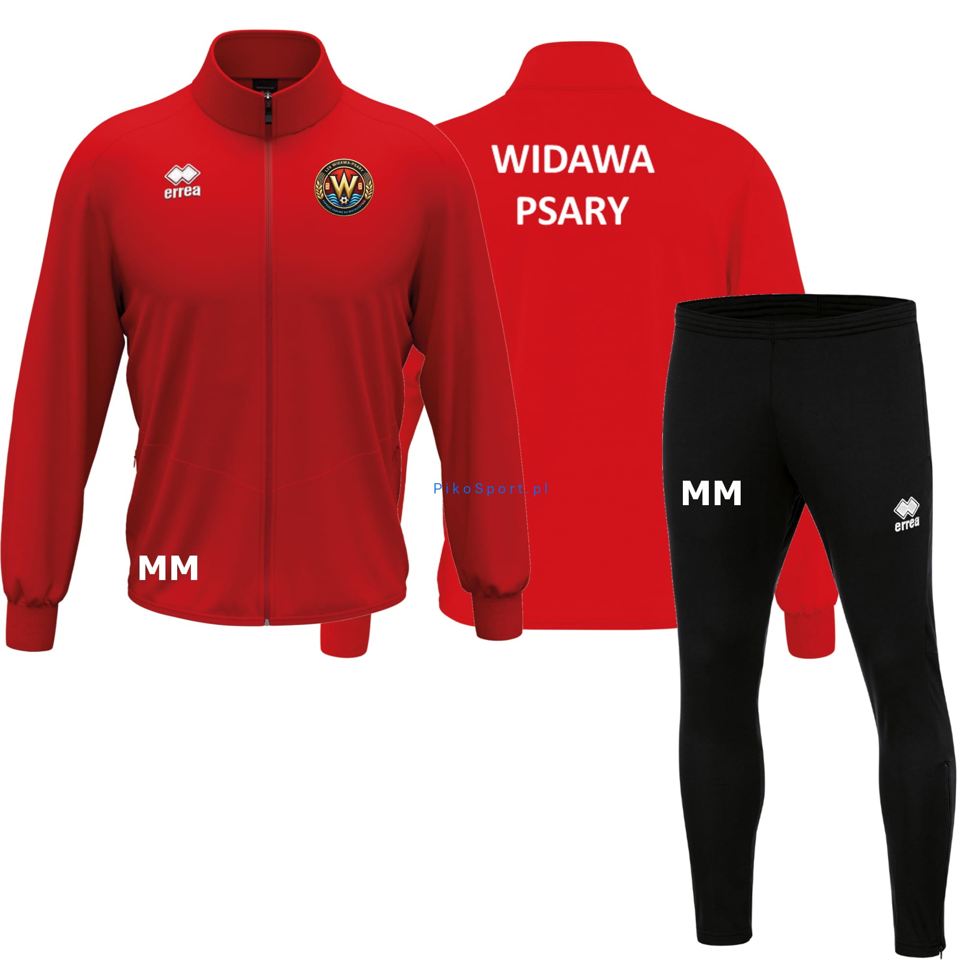 Cena dresu zawiera nadruki: herb i nazwę Widawa Psary, inicjały na bluzie i spodniach.