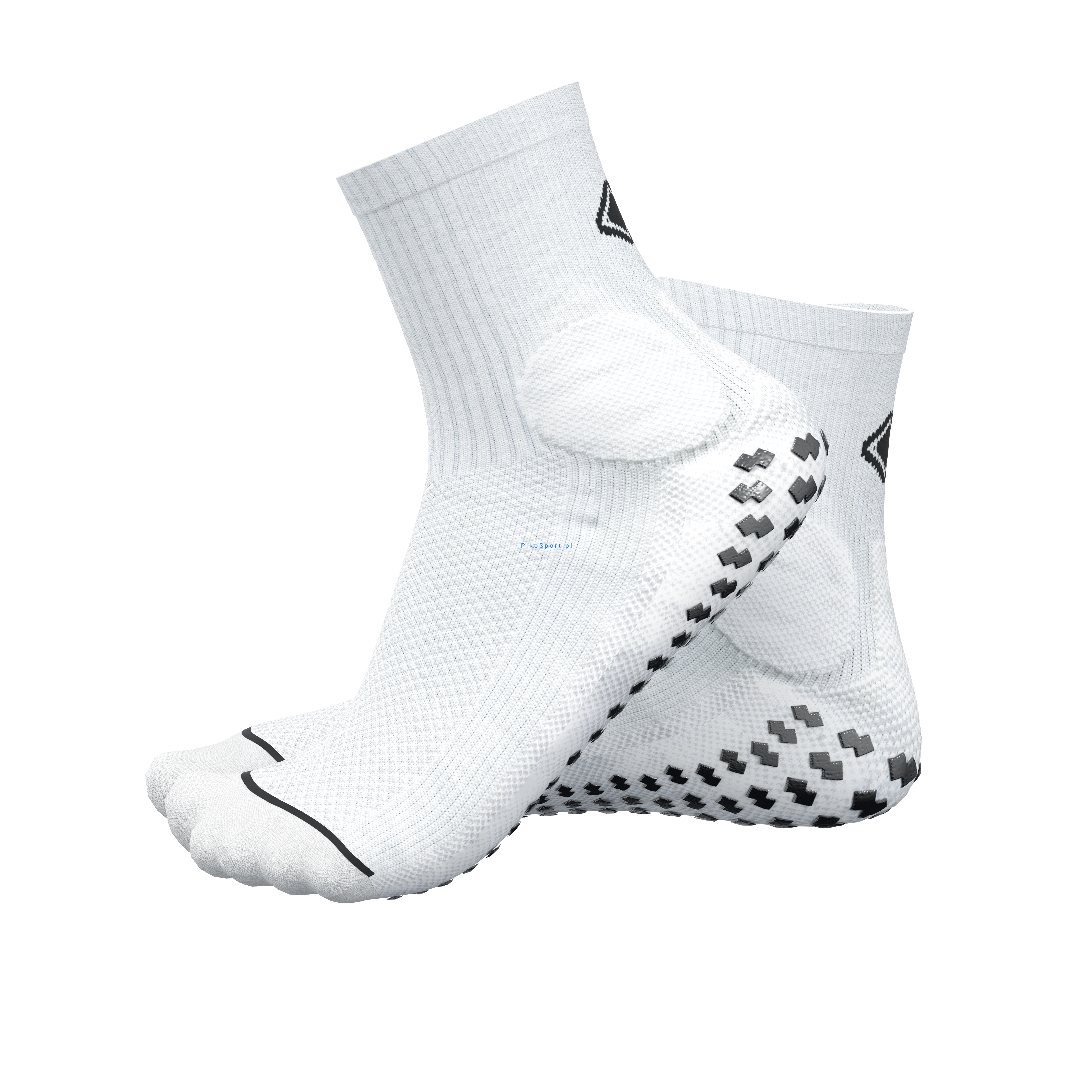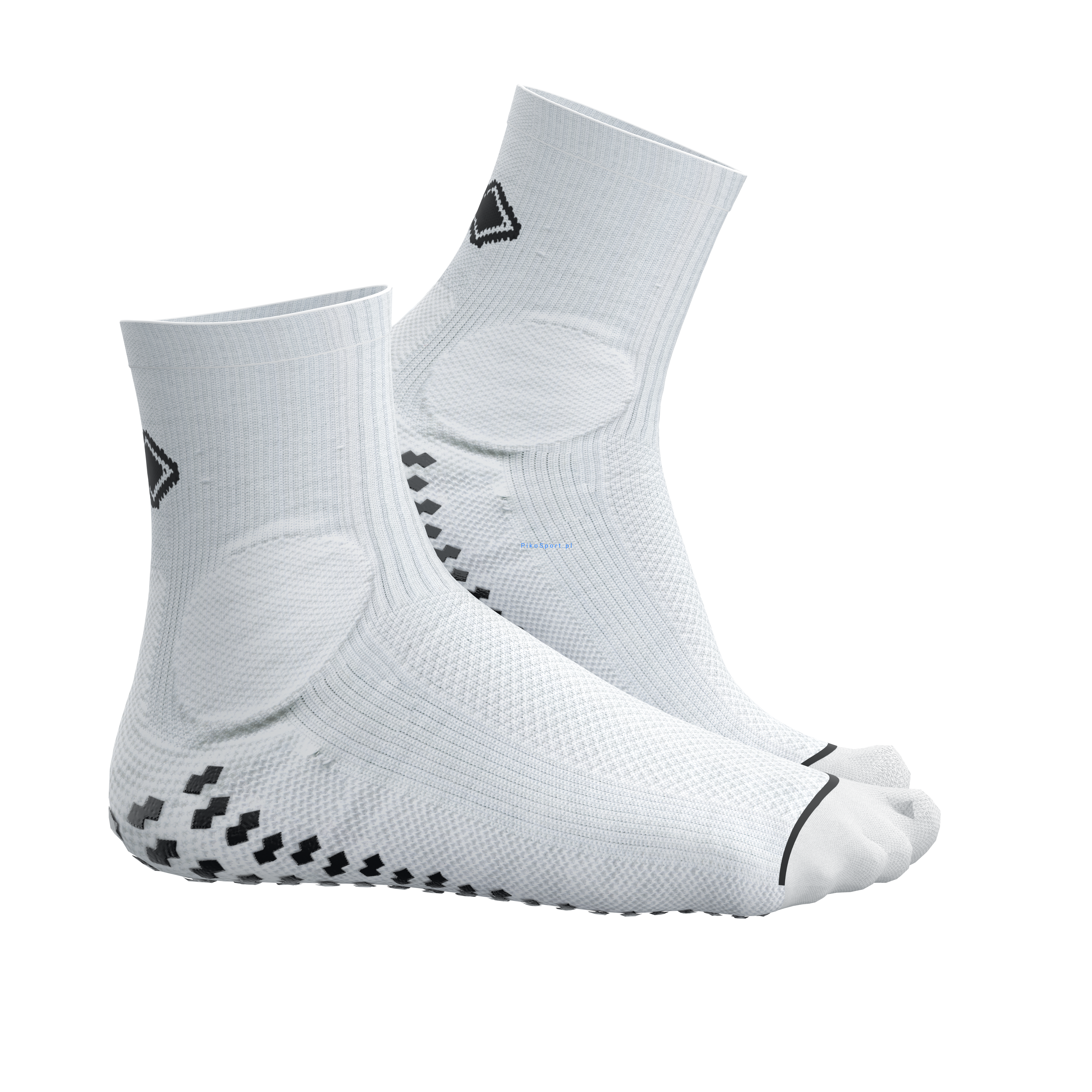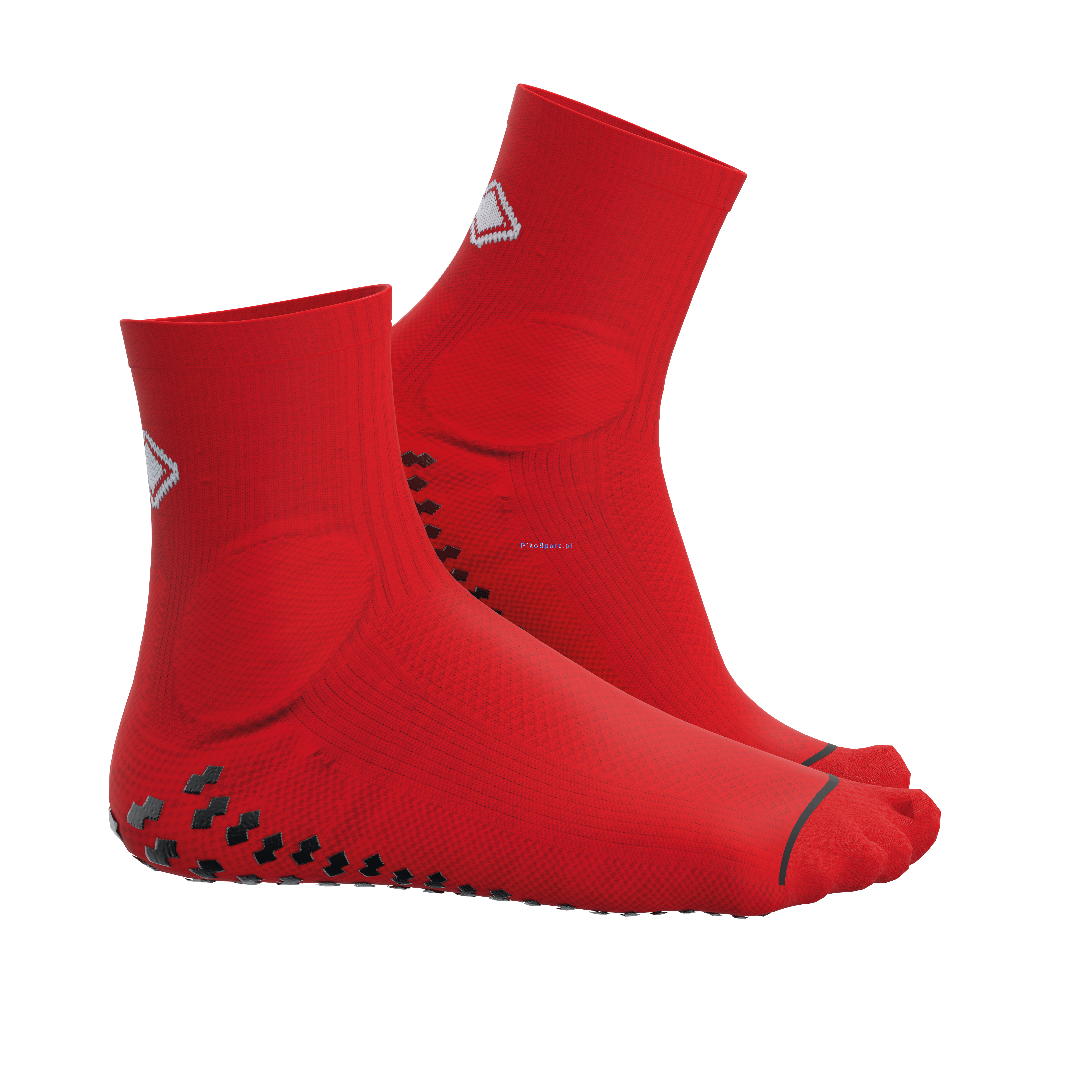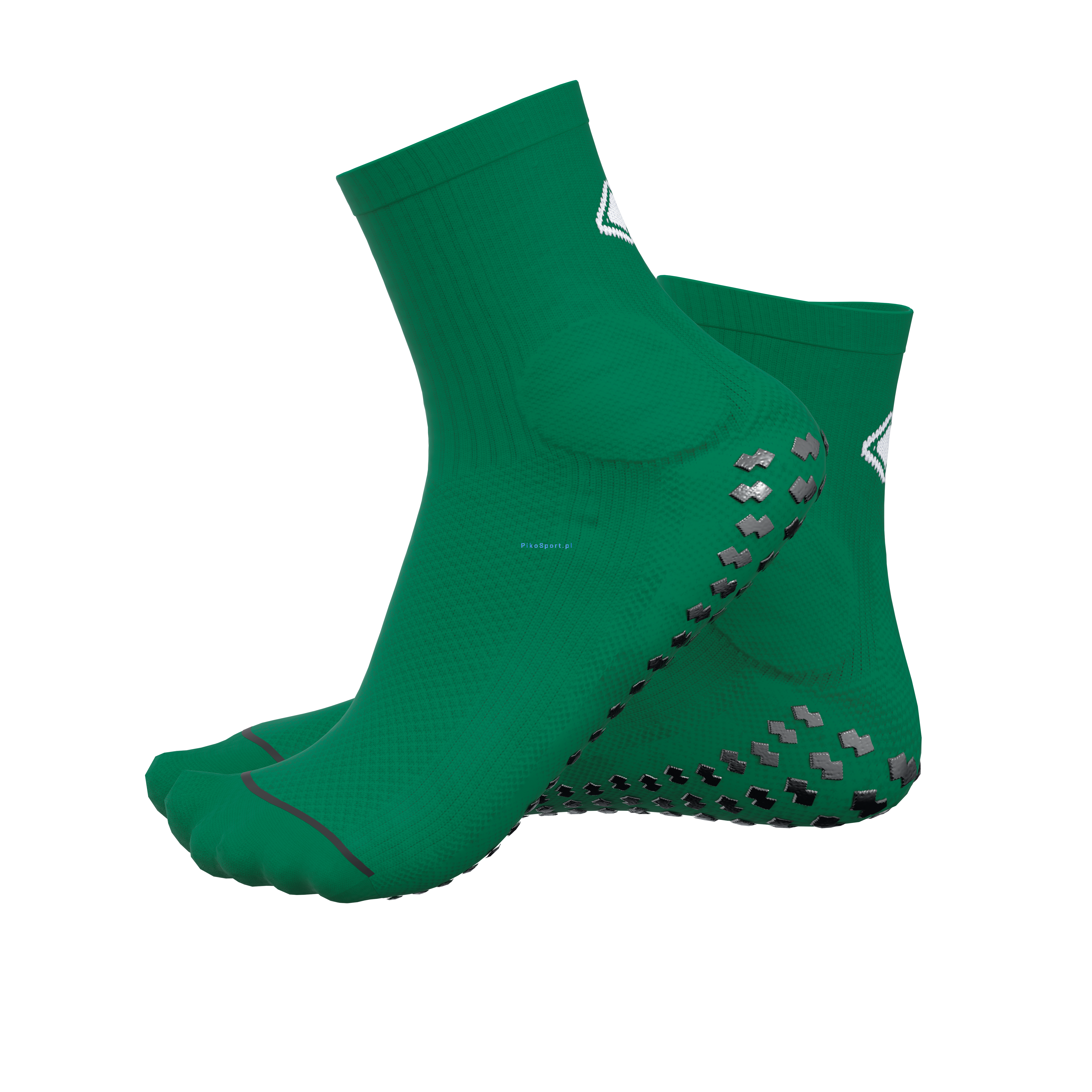 Errea Energy Grip to wysokiej jakości skarpety zwiększające wydajność sportową. Wyposażone w specjalne silikonowe wypustki na podeszwie, które powodują że stopa nie ślizga się w bucie. Na palcach zastosowano lekki materiał frotte, co wspomaga amortyzację w czasie uderzenia oraz zapobiega powstawaniu pęcherzy.