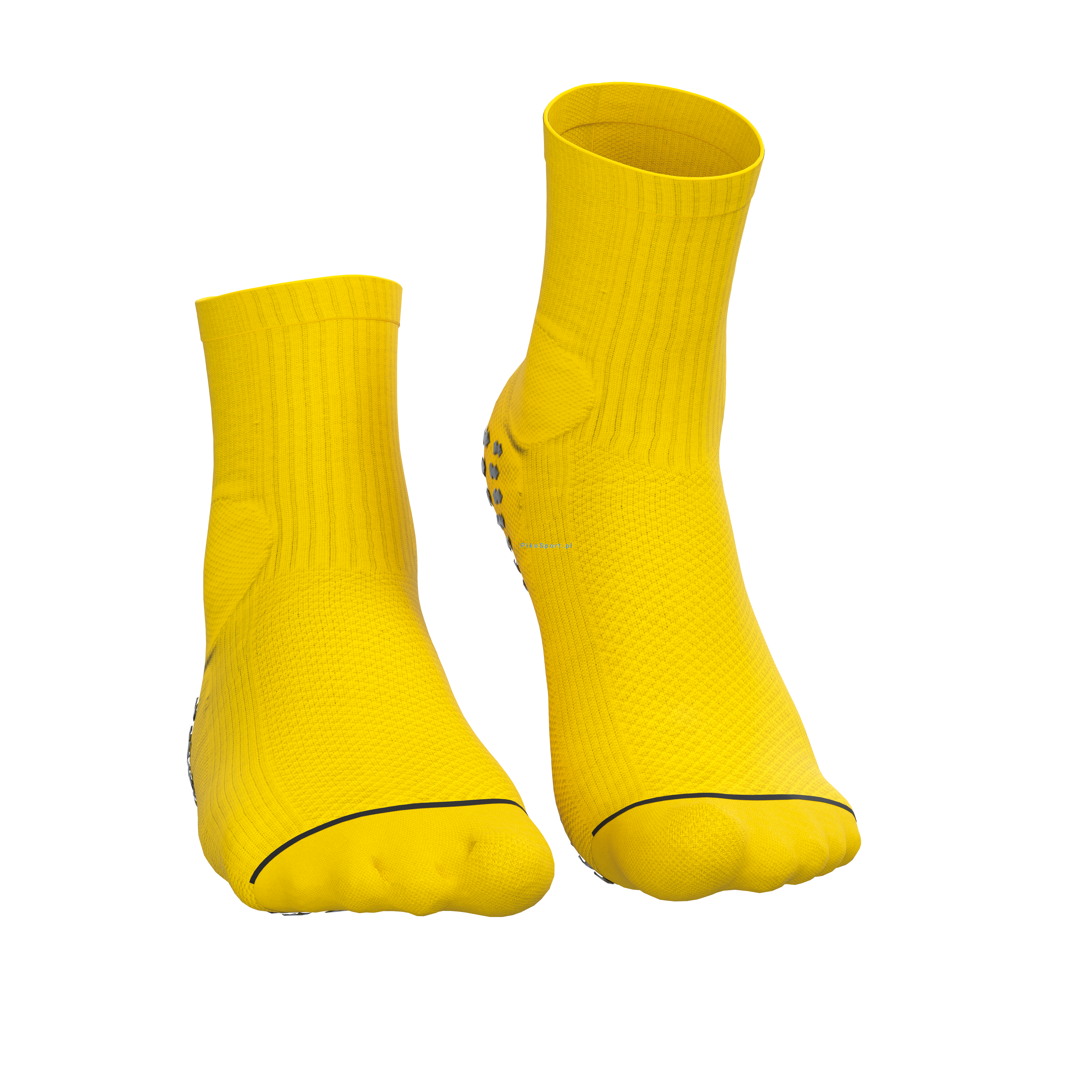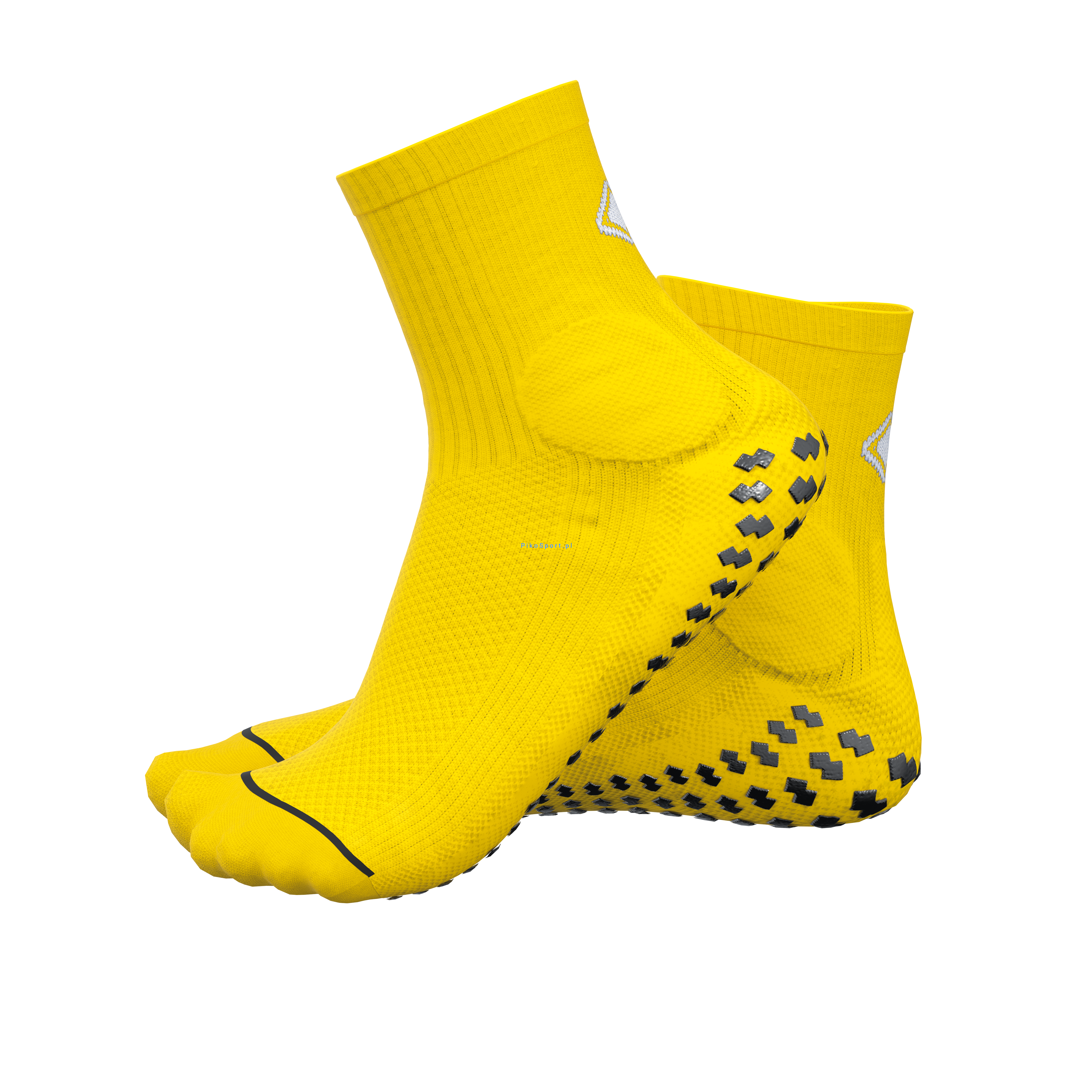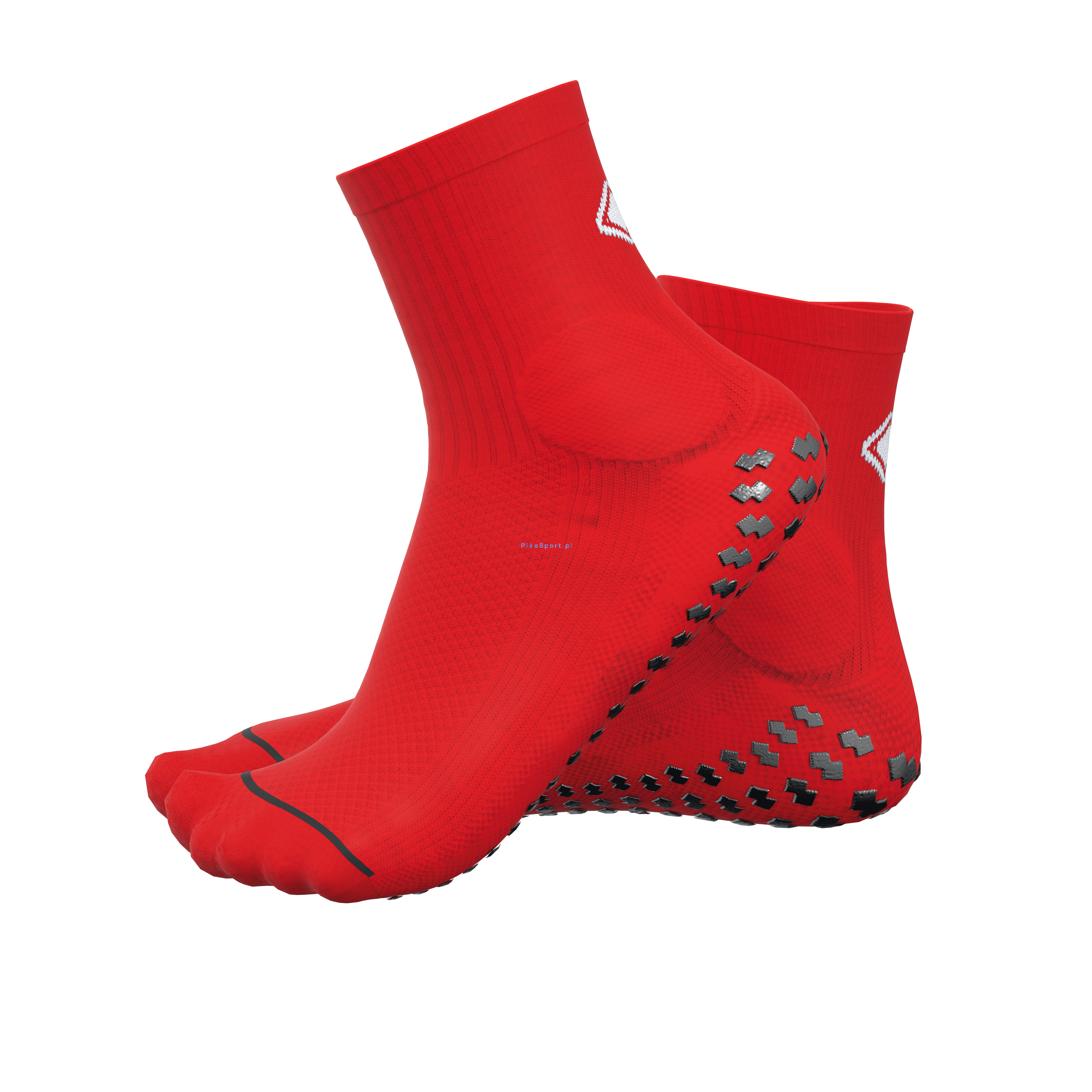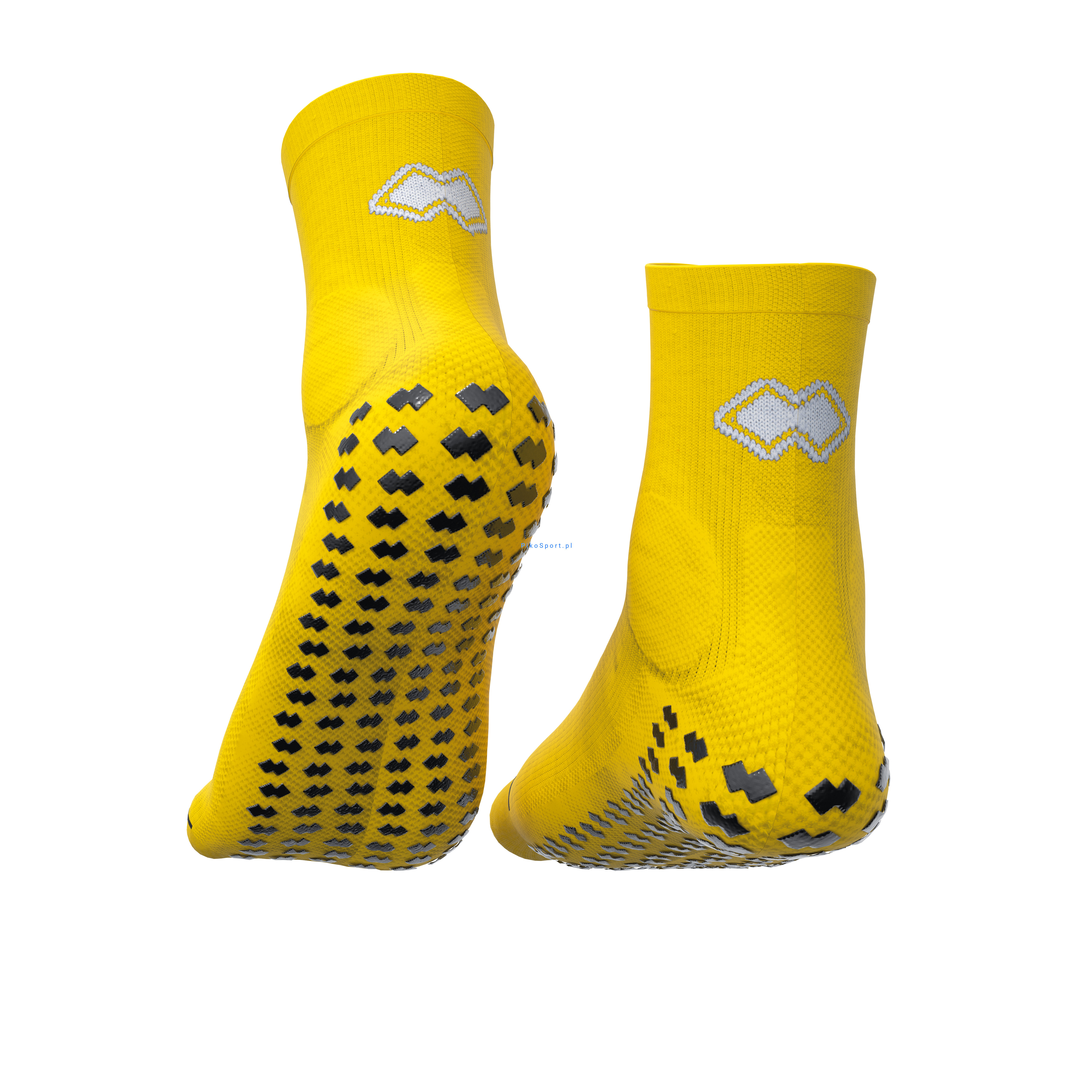 Errea Energy Grip to wysokiej jakości skarpety zwiększające wydajność sportową. Wyposażone w specjalne silikonowe wypustki na podeszwie, które powodują że stopa nie ślizga się w bucie. Na palcach zastosowano lekki materiał frotte, co wspomaga amortyzację w czasie uderzenia oraz zapobiega powstawaniu pęcherzy.