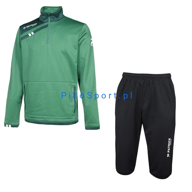 Dres marki Patrick Force115/Pat215 to profesjonalny dres dedykowany sportowcom. Bluza Force115 to wysokiej jakości bluza treningowa uszyta z lekkiej, delikatnej, a jednocześnie bardzo trwałej i odpornej na uszkodzenia tkaniny. Posiada zamek o długości 3/4 oraz jedną dużą kieszeń zamykaną na zamki po obu stronach. Jej pół dopasowany krój doskonale układa się na każdym typie sylwetki. Świetnie sprawdzi się podczas treningu. Spodnie marki Patrick 3/4 Pat215 to profesjonalne spodnie dedykowane sportowcom ceniącym jakość i komfort. Uszyte z lekkiego, niekrępującego ruchów materiału. Posiadają dwie kieszenie. Dostępne w dwóch wariantach kolorystycznych. To doskonała alternatywa dla spodni treningowych z długimi nogawkami.